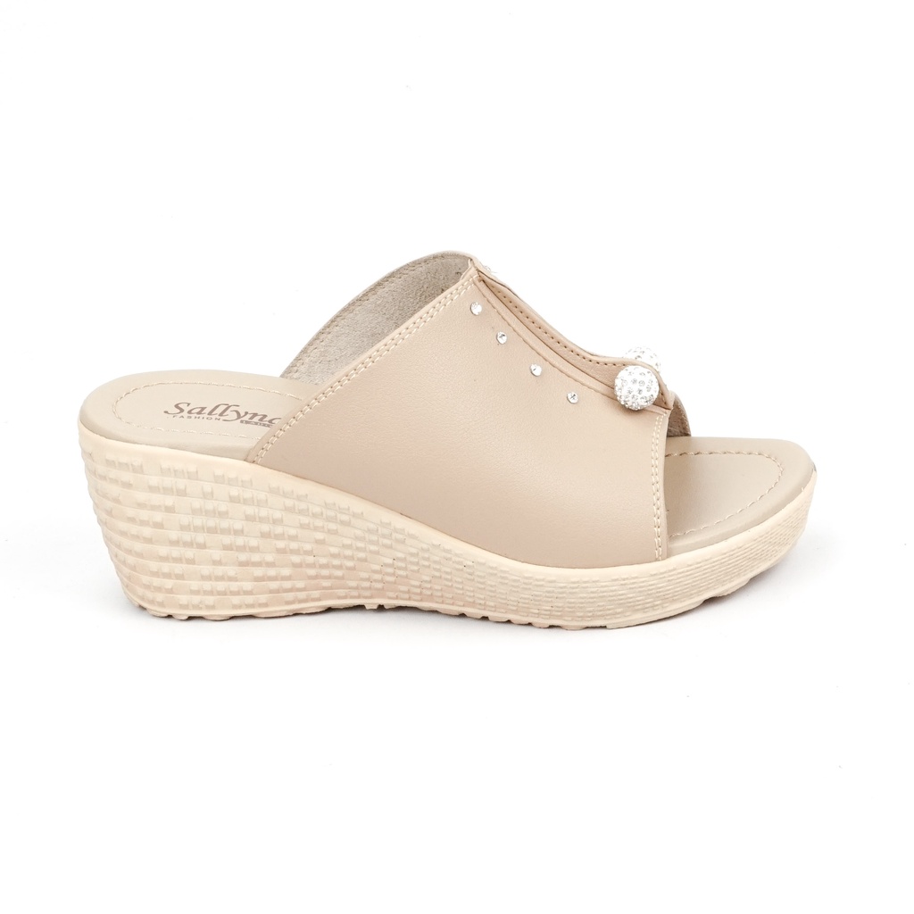 Wedges Wanita Slop Pita SDW298 Cream