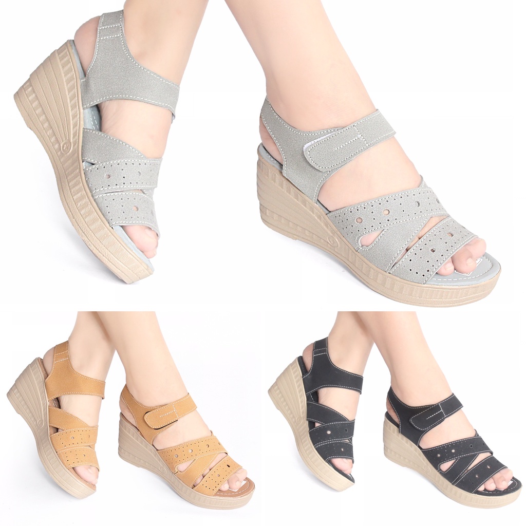 Sepatu Sandal Wedges Wanita Terbaru Cewek Trend 2021 SANDAL WEDGES WANITA SENDAL FASHION ED23