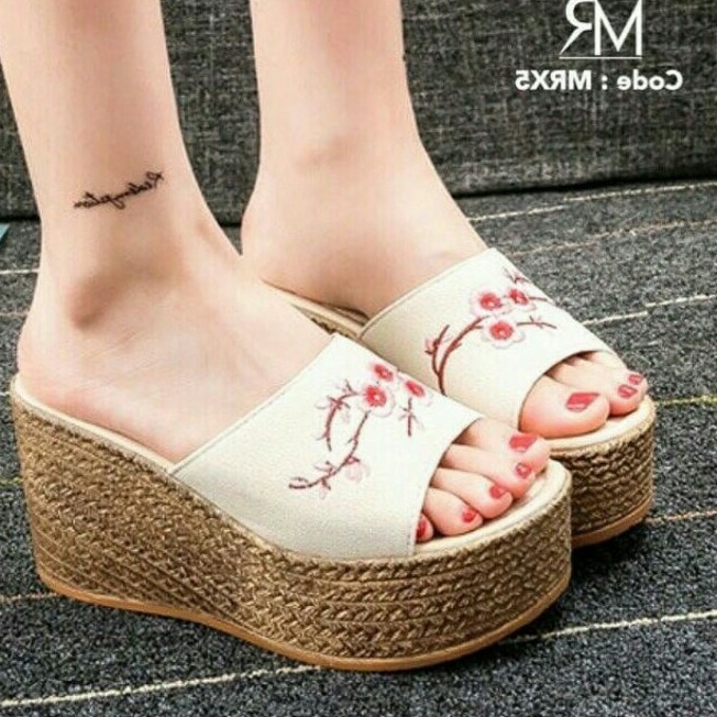 Sepatu Sandal Wedges Wanita Terbaru Cewek Trend 2021 SANDAL WEDGES WANITA FASHION BORDIR BUNGA SAKURA KEKINIAN KOREAN STYLE MURAH JN08